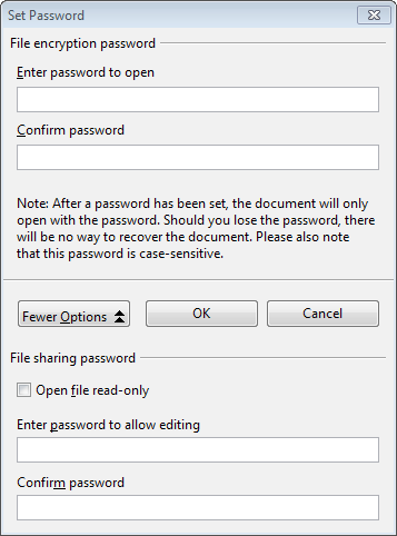 As before, you can save a document with a password that prevents